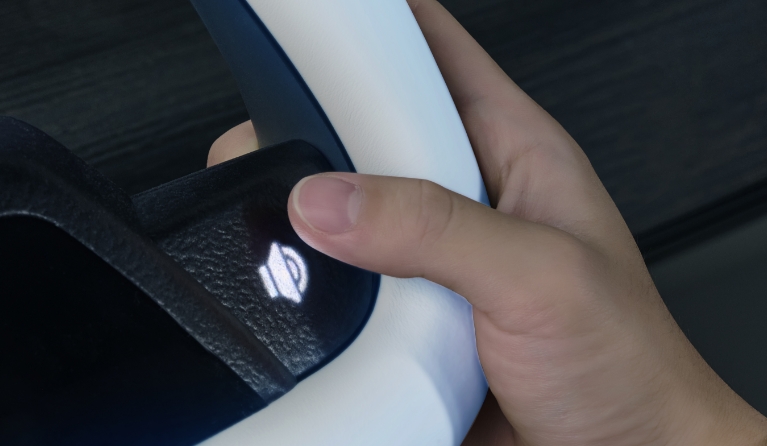 The grip of the steering wheel features hidden operation buttons that, when touched, activate the interface. This interface seamlessly integrates with the front of the driver's HUD, granting the driver an intuitive way to access and control vehicle operating information from the same perspective. It can express operations that make driving very intuitive, all without having to look at the central control screen.
