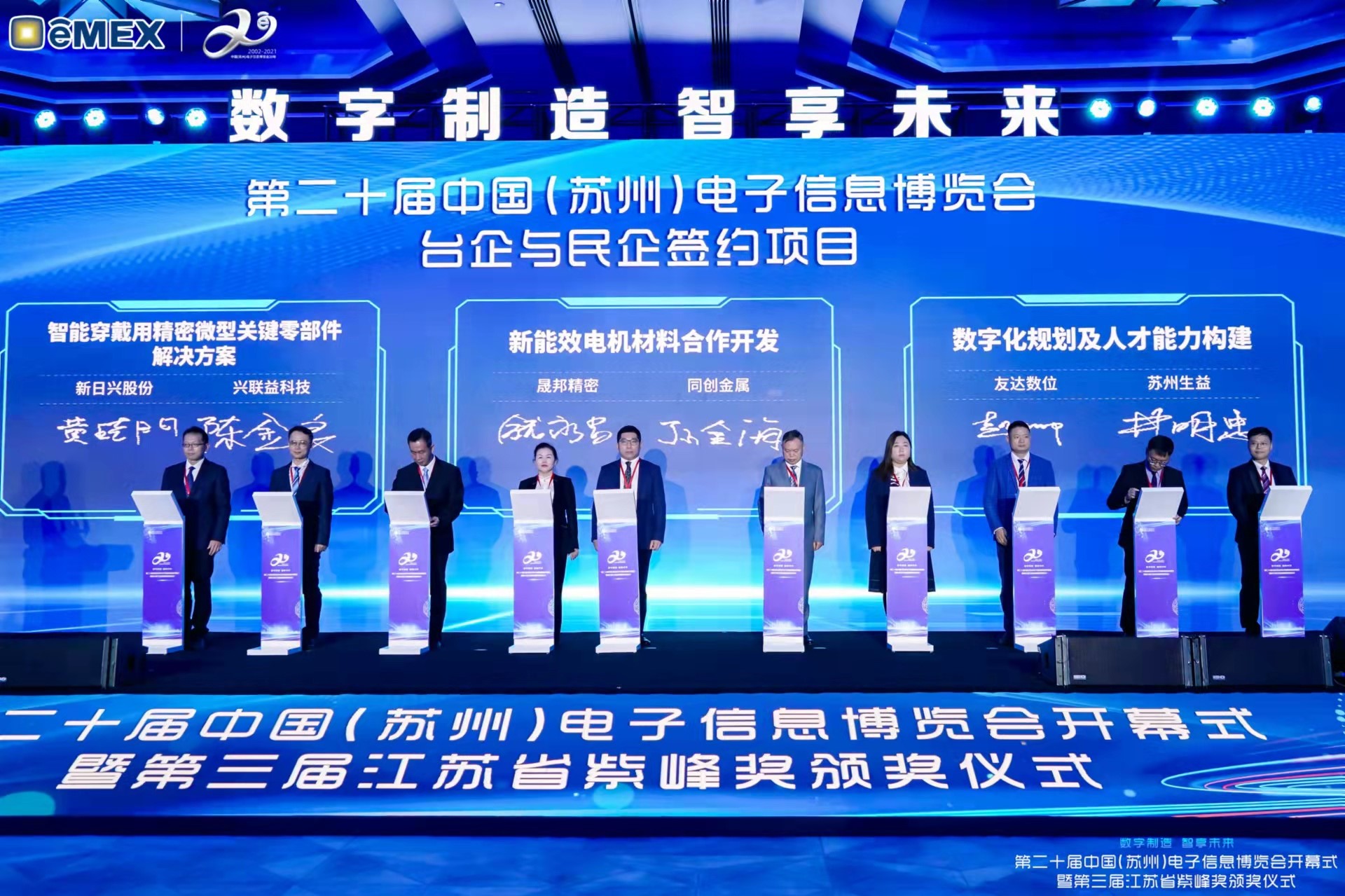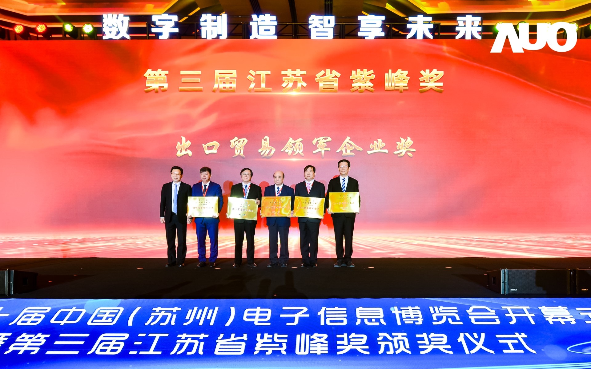 LEYU官網再獲紫峰獎殊榮 電博會開幕式當天也是第三屆江蘇省紫峰獎頒獎儀式,省臺辦、工信廳、商務廳、蘇州市相關領導均出席并頒獎。該獎項為表彰對江蘇高質量發展做出積極貢獻的在蘇企業,由江蘇省政府專門設立。LEYU官網光電 (蘇州) 總經理郭振明代表上臺領獎,這也是LEYU官網蘇州連續三次蟬聯紫峰獎 “出口貿易領軍企業獎”。LEYU官網數位總經理趙麗娜女士,也參與本次開幕式,上臺為本地化賦能簽署戰略合作協議,將優質服務資源集合、下沉到更多細分行業,為更多地區的制造企業提供數字化轉型服務。 |